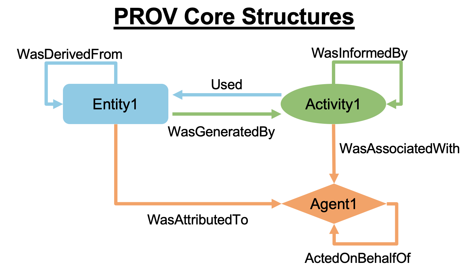 PROV-DMは、World Wide Web Consortium (W3C) が策定した来歴情報(provenance)を記述する国際標準モデルです。PROV-DMにおいて来歴情報は、以下のようにエンティティ・アクティビティ・エージェントの3種類のノードによって表現されます。つまり、来歴情報は、エージェントが責任を負うアクティビティによるエンティティの利用と生成を通じて表現されます。