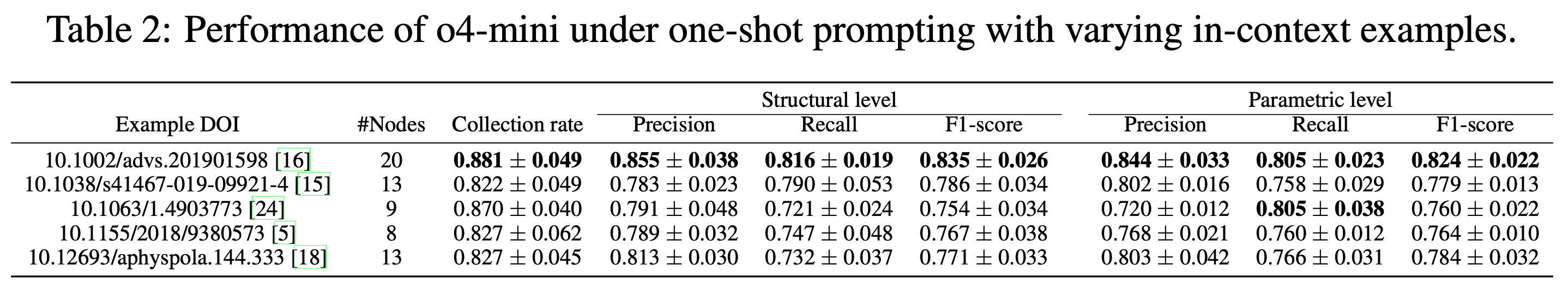 その結果、推論型モデルo4-miniが最も高い精度を示しました。この結果から段階的な合成手順をグラフとして正しく抽出するためには、高度な推論能力が必要であることが示唆されます。
